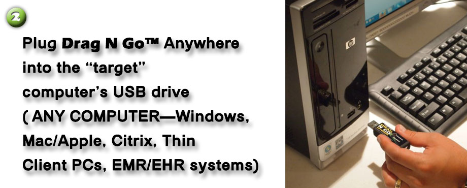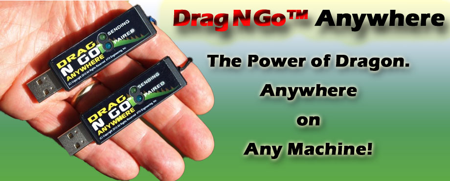 The new Drag N Go™ overcomes all these obstacles and enables you to plug into any computer with our convenient portable device that immediately allows accurate voice recognition without installation of additional software or any intermediate steps.
